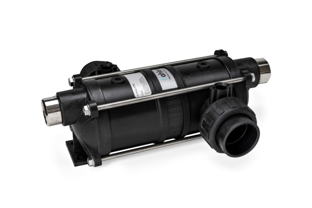 Hi-Temp is a spiral heat exchanger made of thermoplastic with a high glass content for extra durability, and with a coil of acid proof stainless steel.Maximum pressure secondary circuit (pool water) is 4 bar and primary circuit (hot water) is 5 bar.